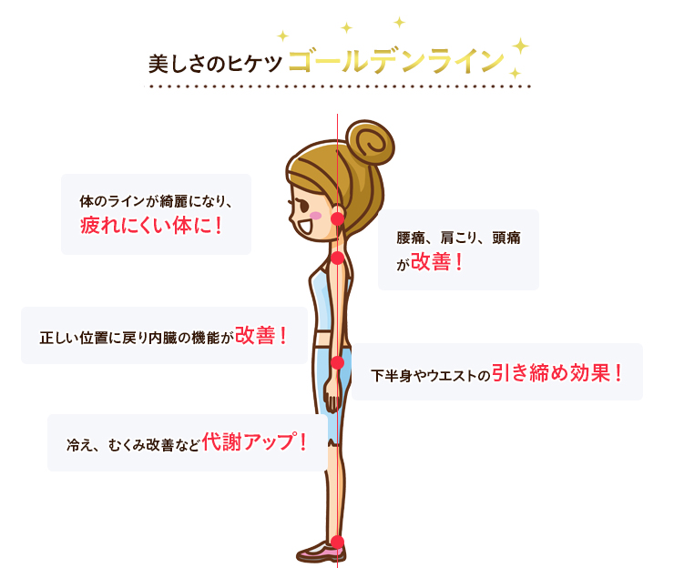 美しいゴールデンライを手に入れることで、肩こりや腰痛などの症状を改善に導きます。」