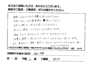 【安心して施術を受けられた!】K.O様(20歳代女性)