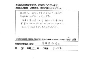 【1回の治療で痛みがなくなった!】J.T様(10歳代男性)
