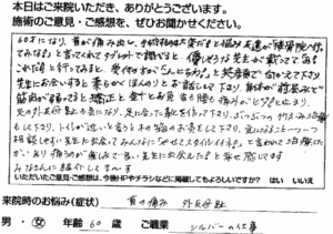 【痛みのない生活を送れるようになりました!】K.T様(60歳代女性)